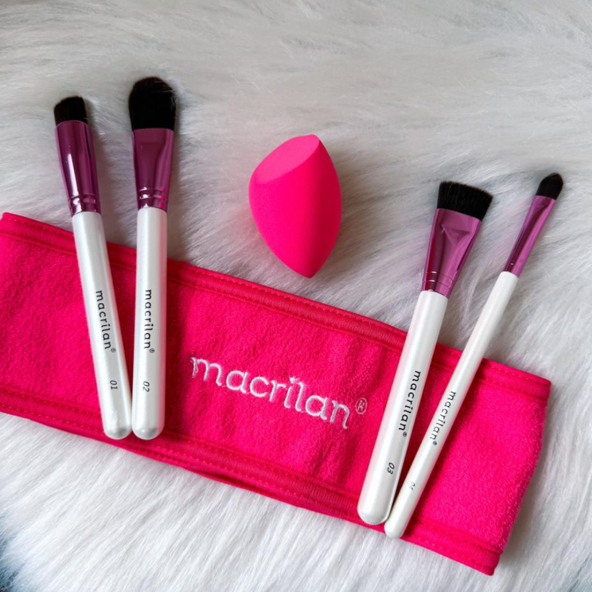 Kit Pincel Macrilan ED012 Essencial – 4 Pincéis + Esponja + Faixa | Compacto e Prático