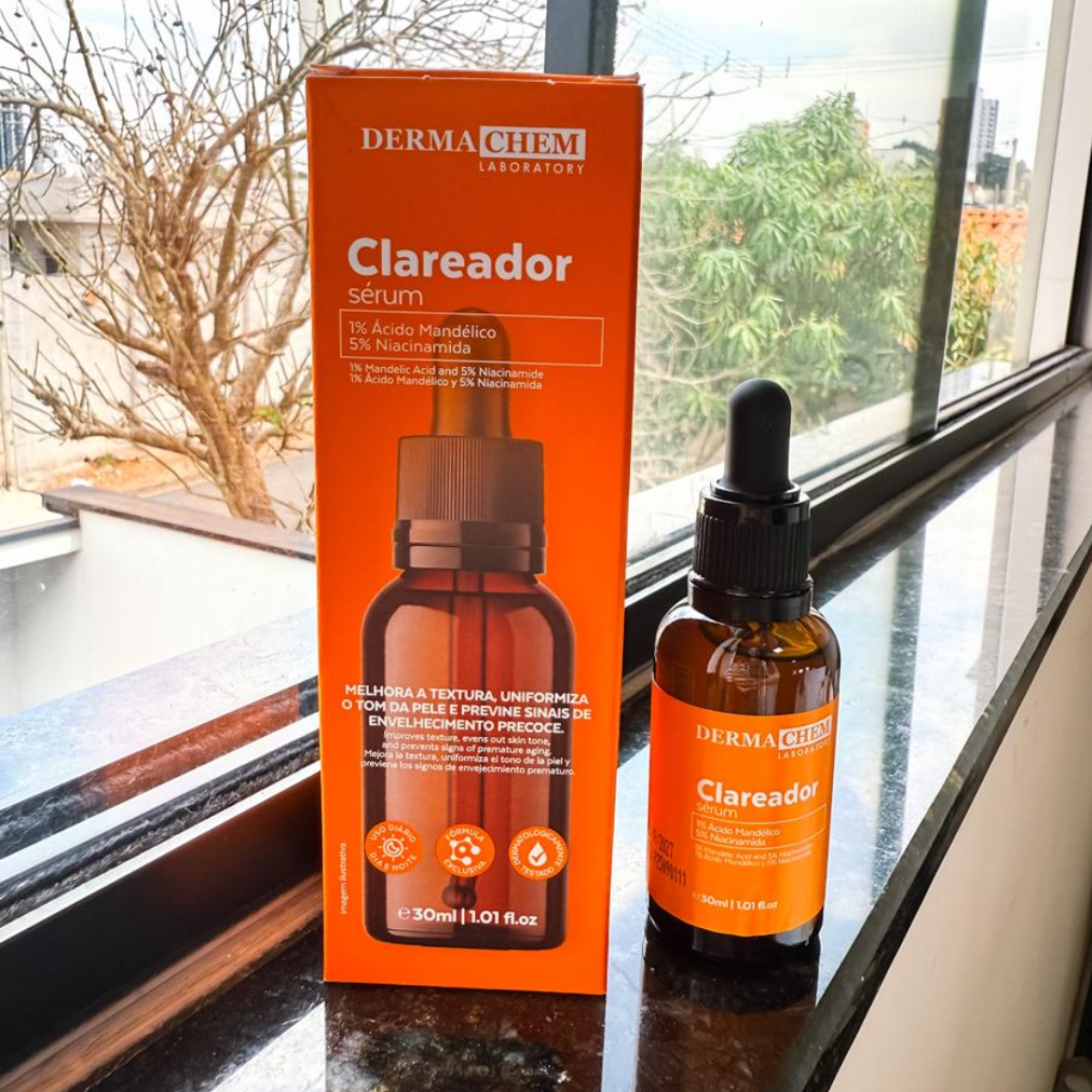 Dê um boost na sua pele com o Sérum Clareador! Com 1% de ácido mandélico e 5% de niacinamida, este sérum possui o blend perfeito para clarear a pele, uniformizar o tom e prevenir sinais de envelhecimento precoce. Ele proporciona um brilho incrível e uma aparência saudável todos os dias. Se você busca uma pele visivelmente mais iluminada e cheia de vitalidade, este sérum é a escolha ideal para dar aquele up na sua rotina de skincare.