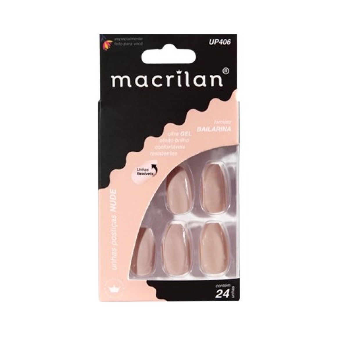Unhas Postiças UP406 estilo bailarina Macrilan cor Nude