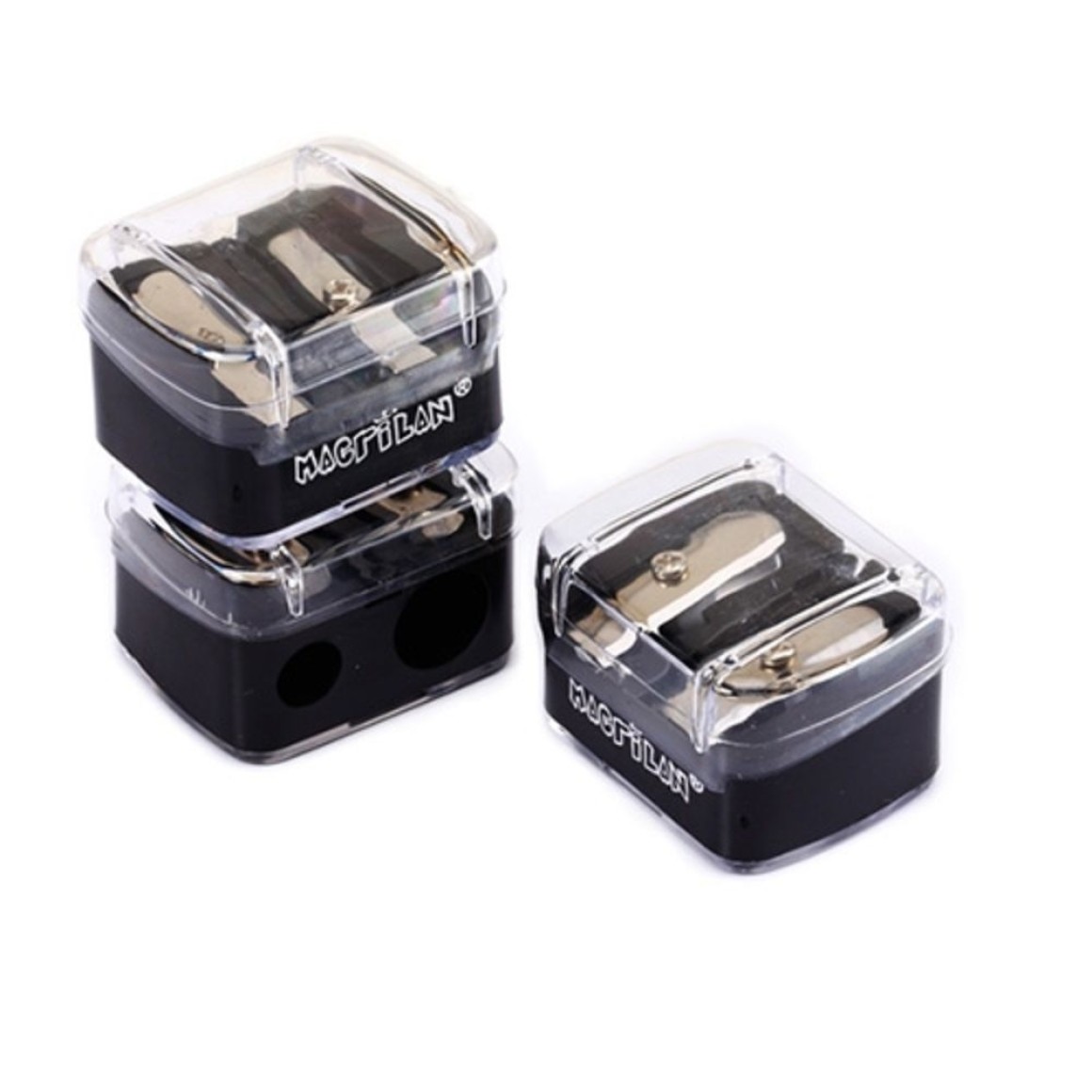 Apontador Macrilan AP-01 com duplo orifício para apontar todos os tamanhos de lápis para olhos, lápis sombra e lápis labial.
