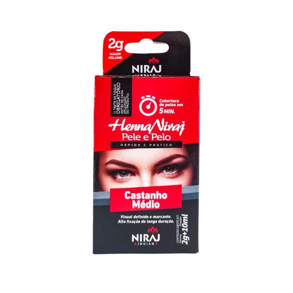 A Henna Niraj Para Sobrancelha 5 Minutos foi desenvolvida especialmente para pessoas que desejam corrigir o formato de suas sobrancelhas (seja por serem ralas, finas, curtas, com falhas ou diferente um da outra). Com ótima fixação e durabilidade, a Henna Niraj Para Sobrancelha 5 Minutos proporciona um design definido e marcante para iluminar e rejuvenescer o olhar.