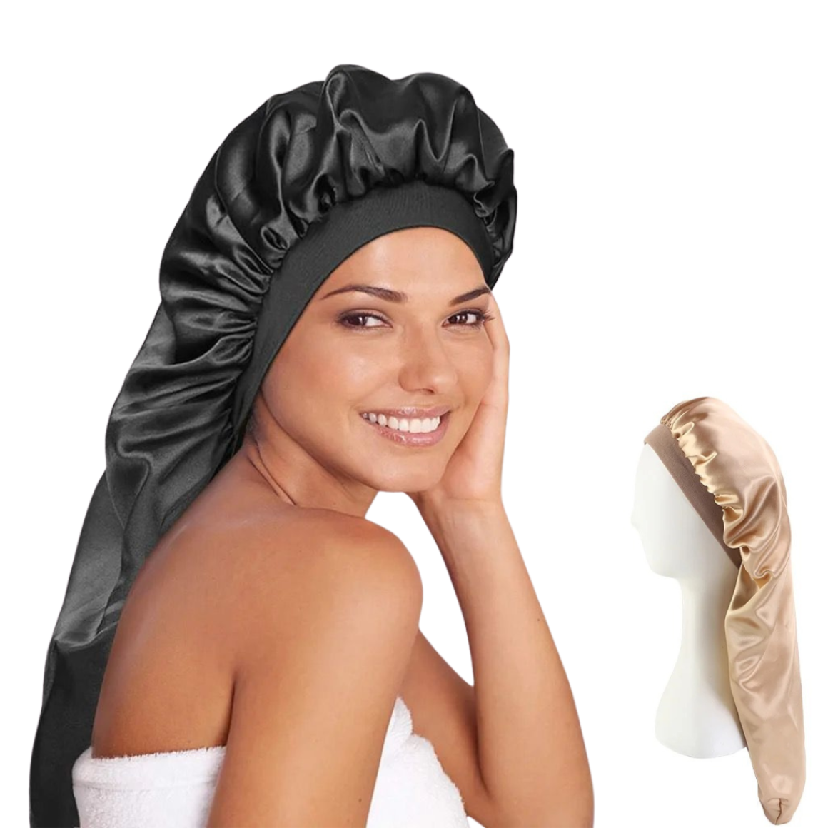 TOUCA DE CETIM ANTI-FRIZZ LONGA C/ FAIXA CABELO COMPRIDO