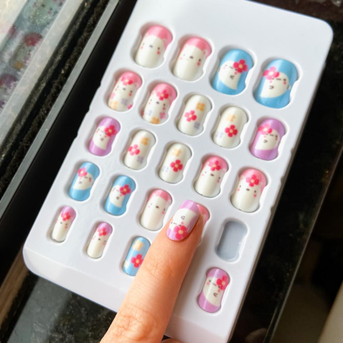 Kit com 24 unhas autocolantes infantis