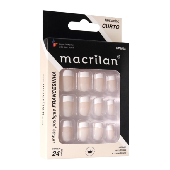 Unhas Postiças Macrilan UP209A curtas especialmente desenvolvidas em uma versão colorida para uma aplicação rápida e segura. Indicadas para uso pessoal e profissional.