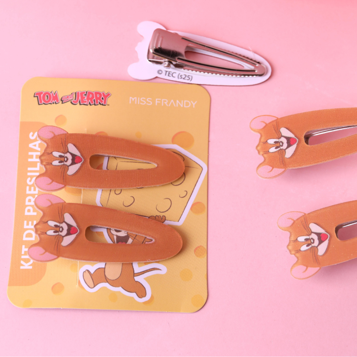 Presilhas temáticas superfofas do Jerry. Além de funcionais para prender os fios no dia a dia, adicionam um toque divertido ao visual. Ideais para complementar penteados ou usar como acessório em momentos de skincare.