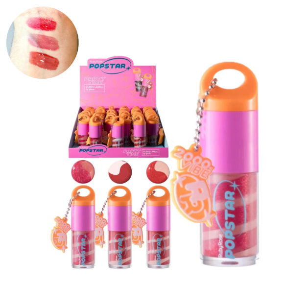 36 LIP GLOSS RUBY ROSE HBL6406/G1 POPSTAR PARTY TIME CHAVEIRO COM PROVADORES