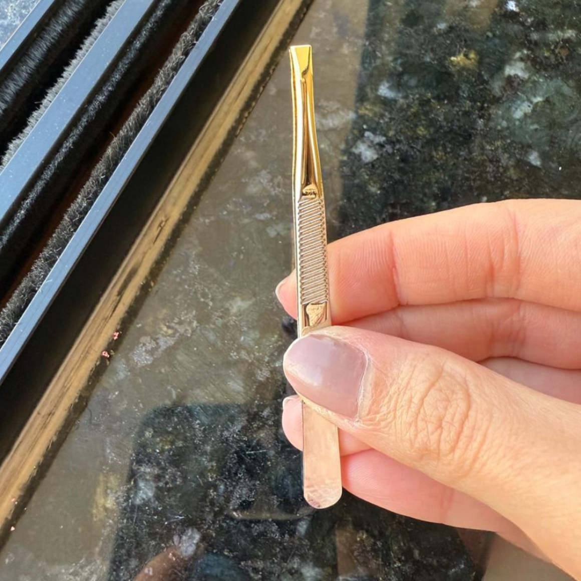 Pinça Macrilan PI-4 especialmente desenvolvida para remoção de pelos da face e corpo. Com acabamento dourado e corte reto para uso pessoal e profissional com praticidade e segurança.