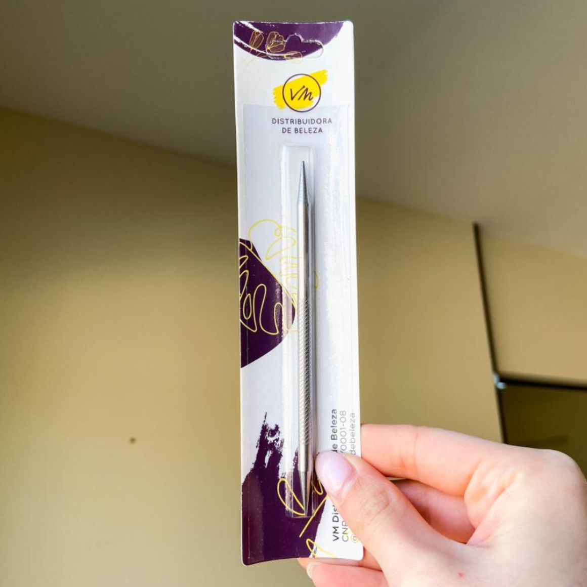 Palito em aço inox especial esterilizável para retirar o excesso de esmalte e dar ótimo acabamento as unhas. Pode ser utilizado para limpeza da pintura das unhas e para unhas artísticas. Duplo: um lado liso e o outro áspero para colocar o algodão, super prático!!