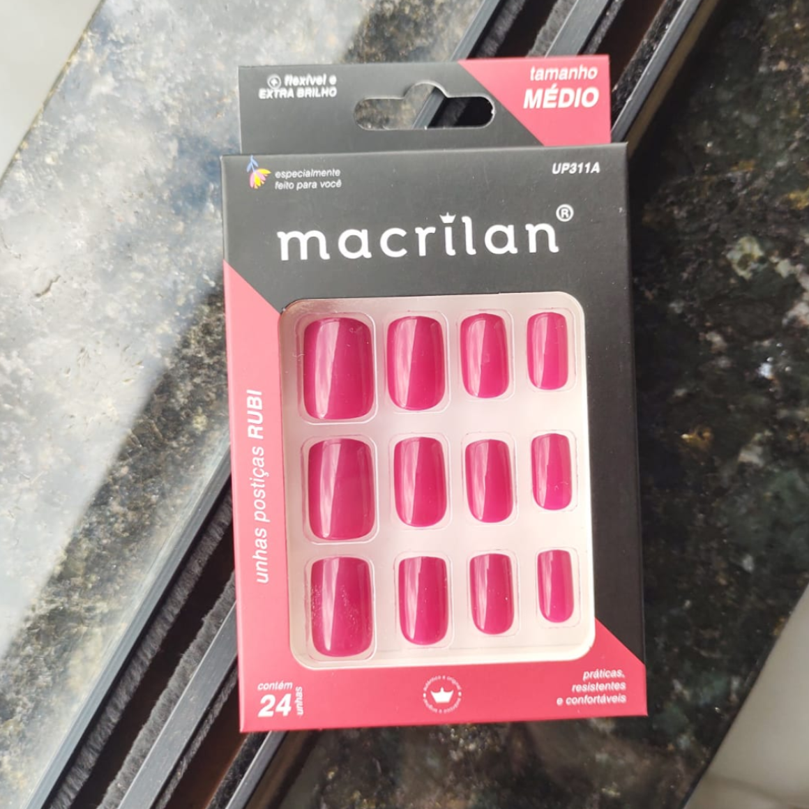 Unhas postiças UP311A tamanho médio Macrilan cor Rubi, especialmente desenvolvidas em uma versão colorida para uma aplicação rápida e segura. Indicadas para uso pessoal e profissional.