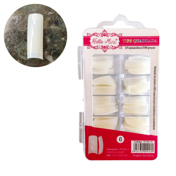 UNHA HELLO MINI OY001-6 TIPS QUADRADA LEITOSA (EMB C/100)