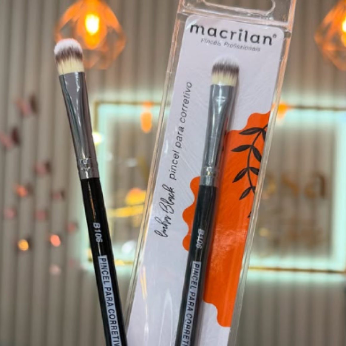 Pincel Macrilan B106, especialmente desenvolvido para aplicação de corretivos faciais. Feito com cerdas especiais para um acabamento suave e uniformização da pele.