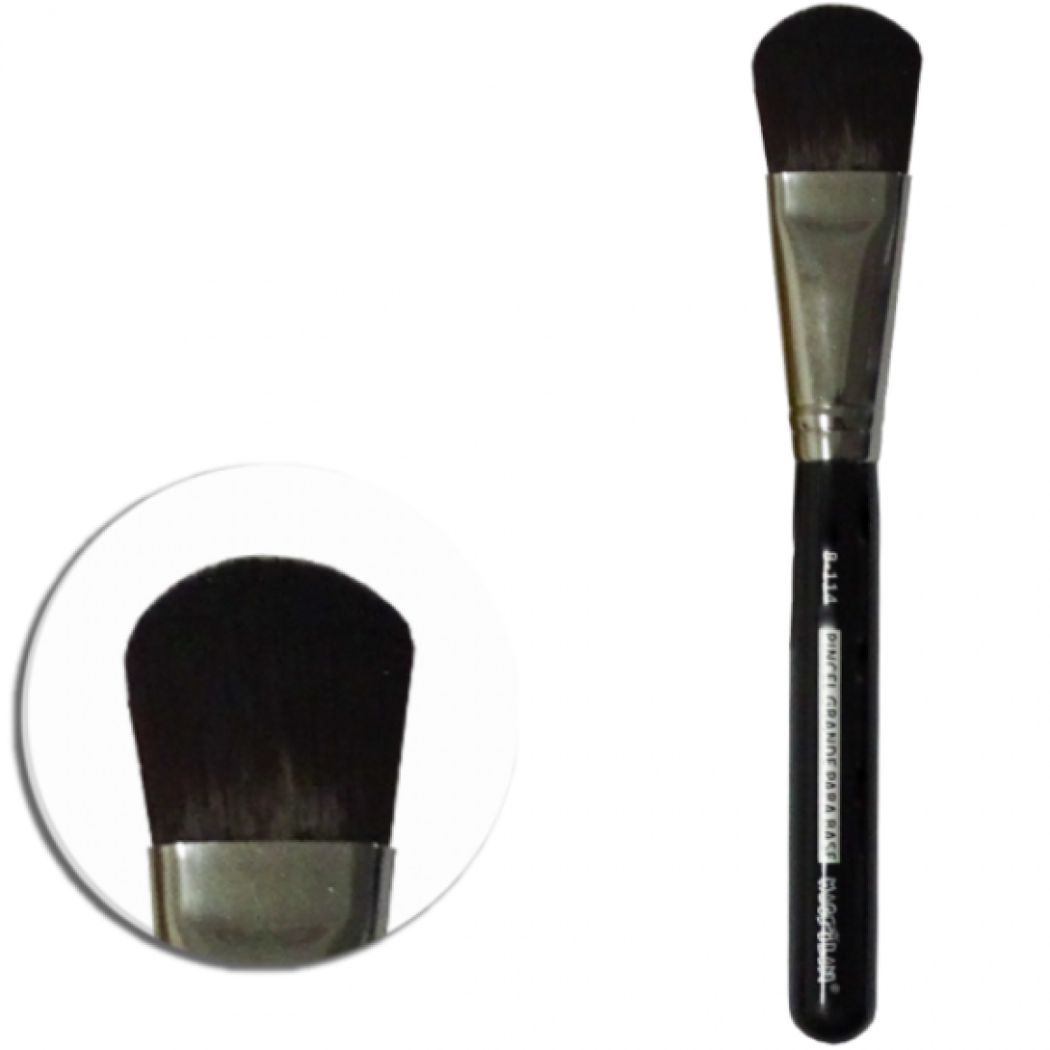 Pincel Macrilan B114, especialmente desenvolvido para aplicar e distribuir base em creme ou líquida em todas as áreas da face. Feito com cerdas especiais que permitem uma aplicação suave e uma maquiagem uniforme.