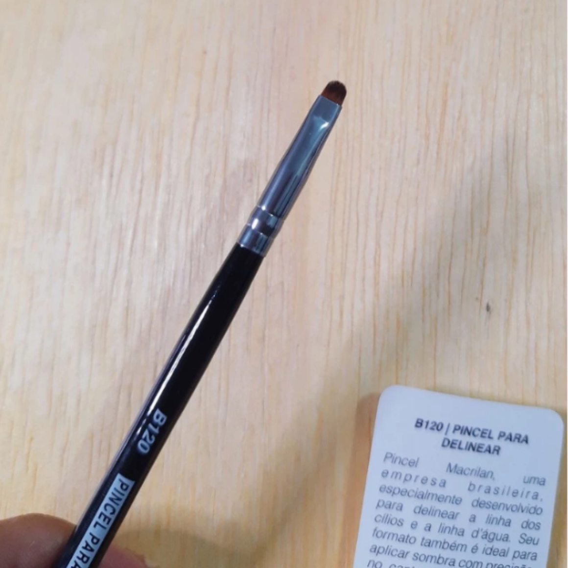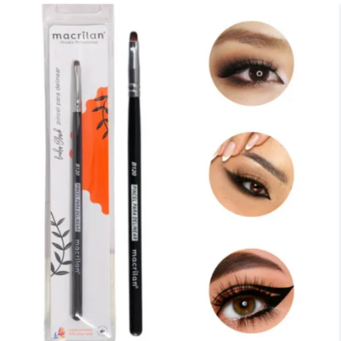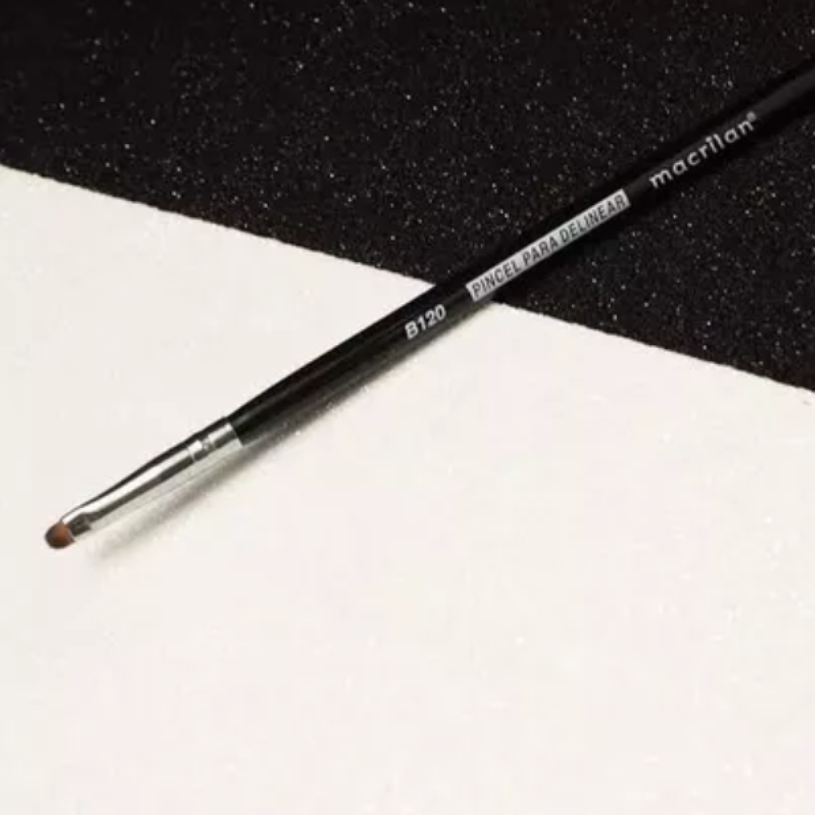 Pincel Macrilan B120, especialmente desenvolvido para delinear a linha dos cílios e a linha d’água. Seu formato também é ideal para aplicar sombra com precisão, no canto interno ou externo dos olhos. Feito com cerdas especiais para um acabamento suave e uma maquiagem impecável.