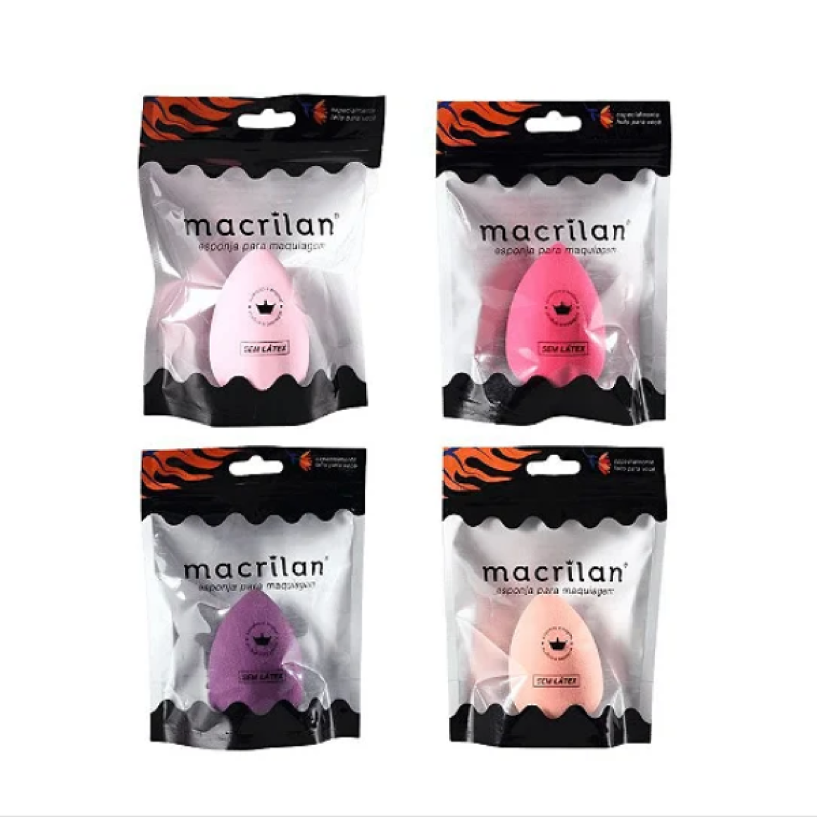 As esponjas gota Macrilan EP09 possuem um formato especial e é excelente para aplicação de produtos líquidos, cremosos ou em pó como corretivos, bases, iluminadores e blushes de maneira uniforme, sem desperdício e com aspecto natural.