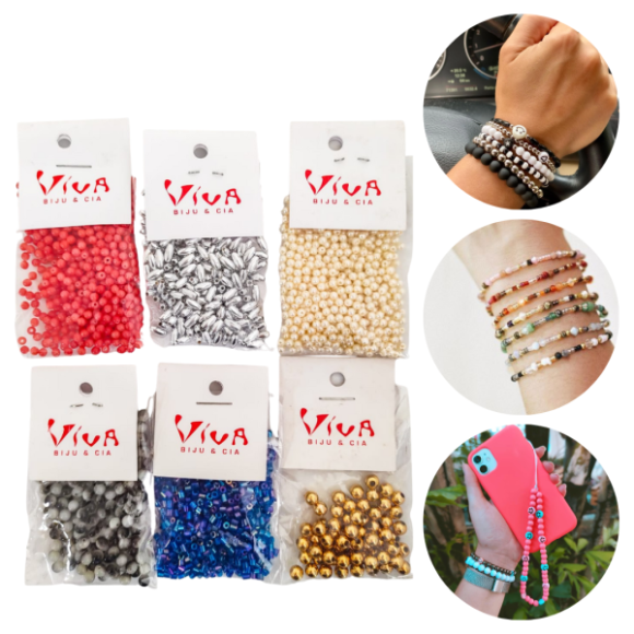 Miçangas coloridas, cada pacotinho contém uma miçanga de modelos e cores sortidas dos outros pacotinhos, ideal para se divertir com as crianças na hora de fazer sua pulseira, colar, alça para celular... Use a sua criatividade para criar seu próprio estilo!