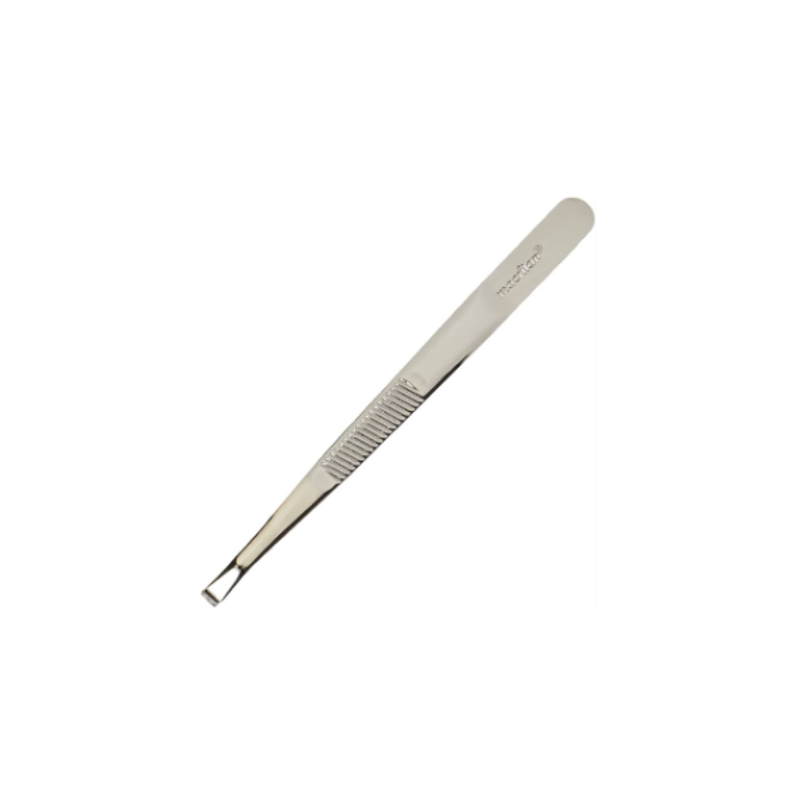 Pinça Macrilan PI-2 especialmente desenvolvida para remoção de pelos da face e corpo. Com acabamento dourado e corte reto para uso pessoal e profissional com praticidade e segurança.