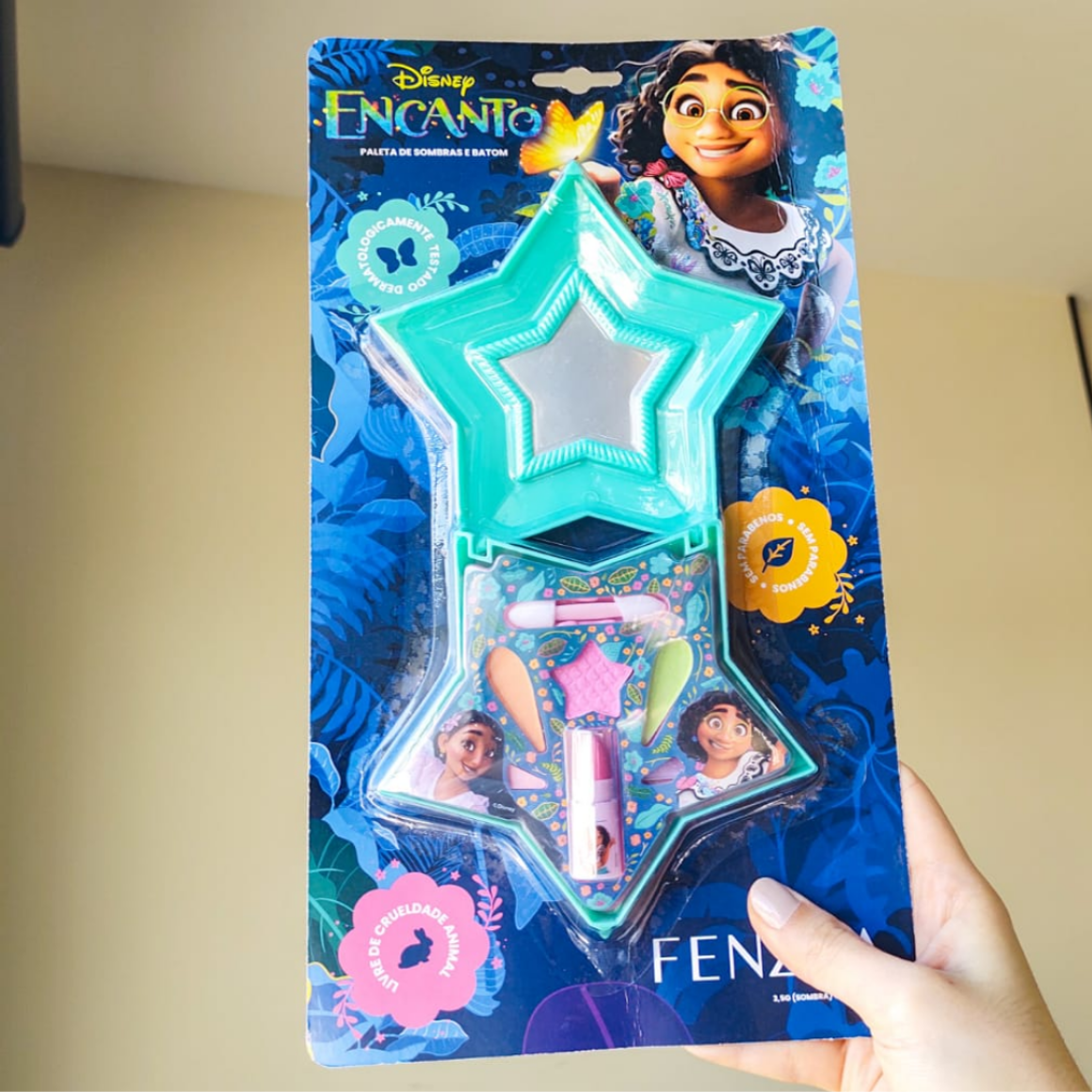 Cartela com Maquiagem Infantil em formato de estrela com essa embalagem lindíssima do desenho Encanto, um produto que encanta as crianças!