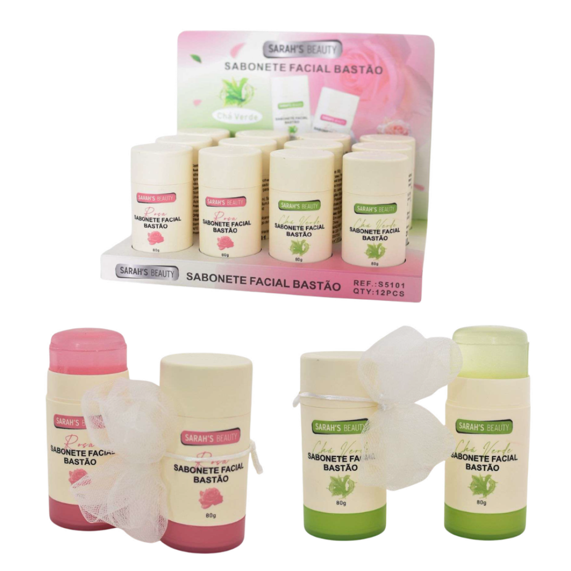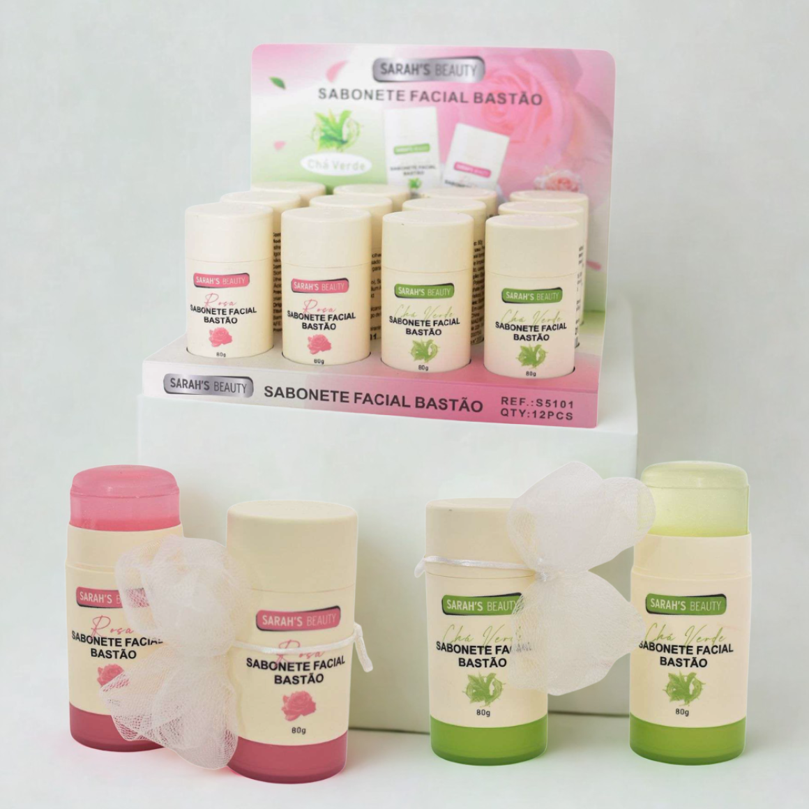 BOX COM 12 UNIDADES SABONETE FACIAL EM BASTÃO S5101 SARAH'S BEAUTY 80G