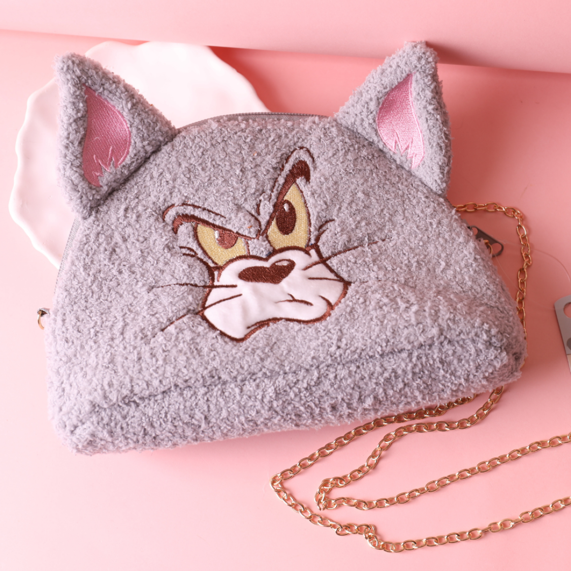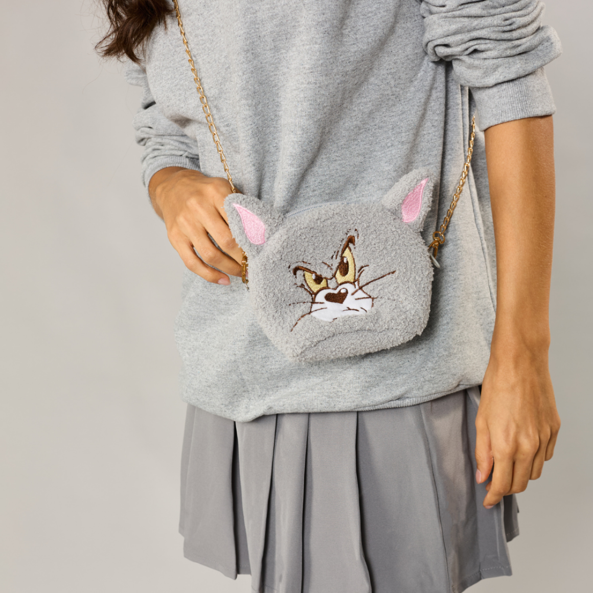 Feitas em tecido peluciado, com acabamento macio e estampa dos Tom. Além de superfofas, são espaçosas e funcionais. Com alça removível.